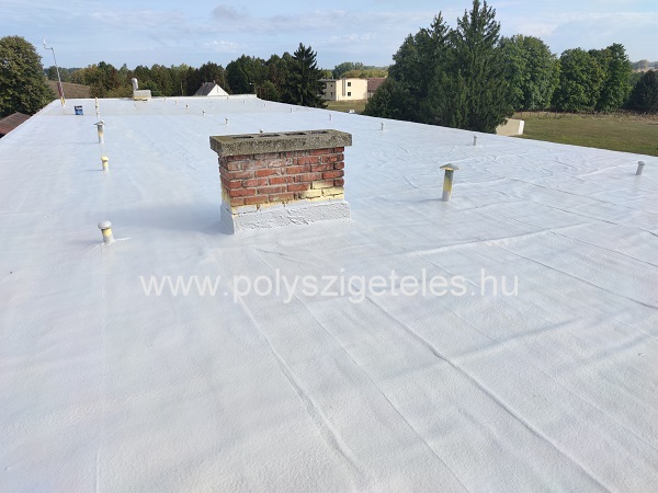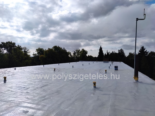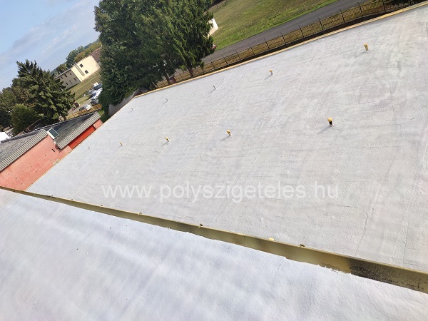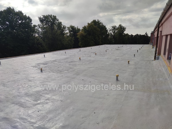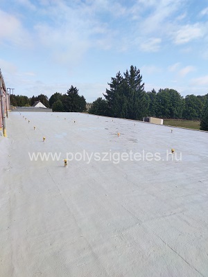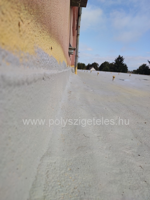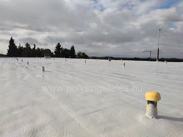Raktárépület tetőszigetelése zárt cellárs szórt purhabbal.